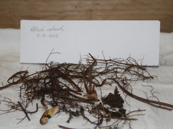 When the tops of plants begin to die back, it’s the time to gather roots. Black cohosh, black snakeroot, bloodroot, goldenseal, and wild comfrey fall into this category along with ginseng. Many of these roots will be put to stores for herbal remedies but many are also divided and replanted to propagate plants for the nursery.